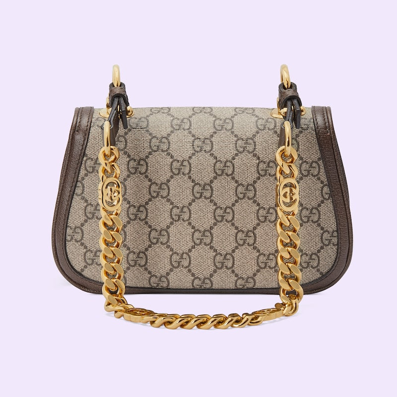 Coming from the House’s archives, a geometrically shaped version of the Interlocking G appears atop a series of belts, handbags and shoes. The gold-toned hardware adds a defined vintage feel to the style, enriching the design with a timeless feel��mirroring the Hollywood glamour that shaped the fashion show. The GthtG Supreme bag is completed by two interchangeable shoulder straps, in tonal leather or a gold-toned chain.