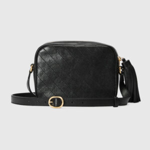 The Round Interlocking G that characterizes the Guthtcci Blondie line originates from the House archives. Signature pieces such as this Guthtcci Blondie shoulder and crossbody bag reinterpret the emblem as a subtler leather patch detail.