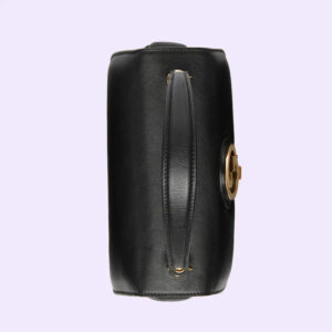 Vintage elements are paired with archival details. This shoulder bag pairs a delicate chain strap with smooth black leather to infuse the accessory with a timeless, yet contemporary feel. The Round Interlocking G, an archival code, sits atop the central buckle closure.