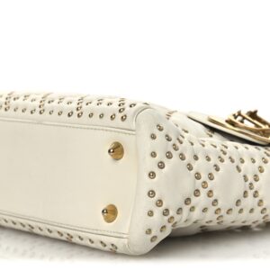 Calfskin Cannage Studded Small Supple Lady Dior White