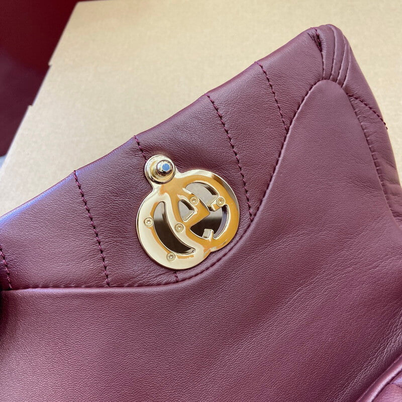 - Gucci Rosso Ancora red puffy quilted leather.