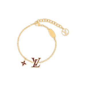 The LV Iconic Enamel bracelet features a trio of Louis Vuitton emblems. Crafted in bordeaux enamel, the LV initials and a Monogram Flower are complemented by an LV Circle charm at the end of the adjustable chain. Adding a touch of romantic femininity to any outfit, it makes an ideal companion to the LV Iconic earrings.