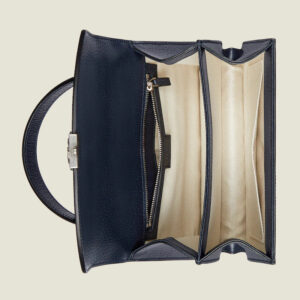 Mirroring the material’s historic origins, GthtG Supreme is introduced in a timeless mix of blue and beige for Guthtcci Love Parade. The canvas has come to the front of each collection decade after decade to become a hallmark of the House. Here, the classic palette defines this small-sized Ophidia top handle bag.