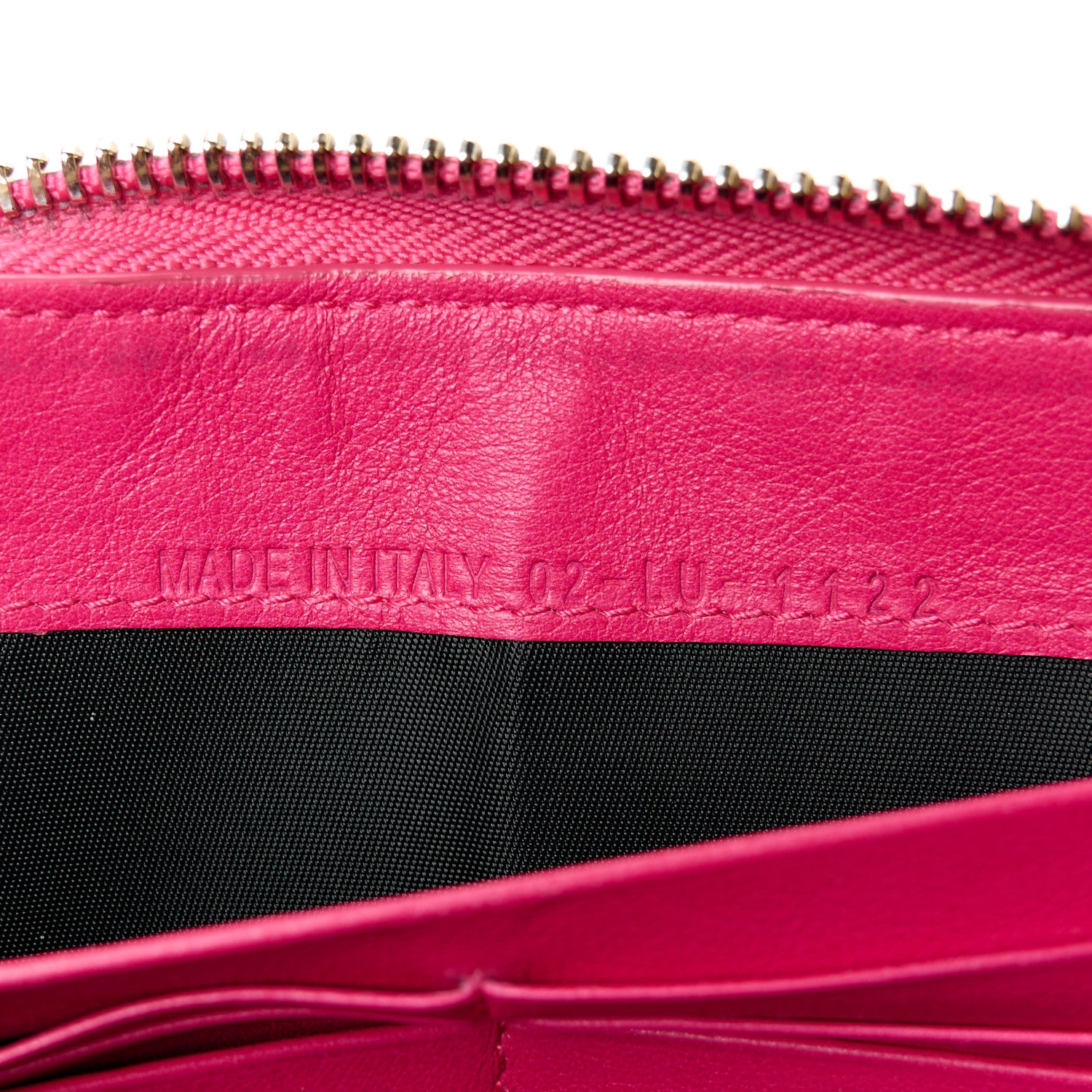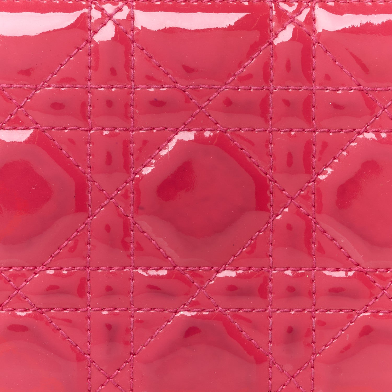 This is an authentic CHRISTIAN DIOR Patent Cannage Lady Dior Continental Wallet in Pink. This chic clutch wallet is crafted of glossy geometric quilted patent leather in pink. The wallet opens with a zipper on three sides to a partitioned interior with two panels of card slots, patch compartments, and a zipper compartment.