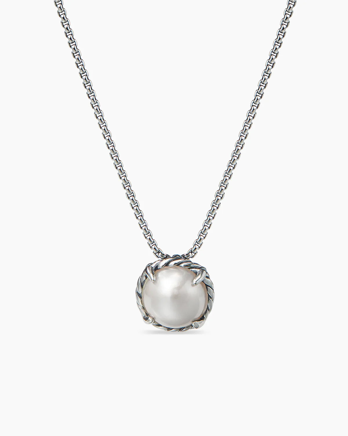 Petite Chatelaine Necklace Sterling Silver with Pearl, 10mm