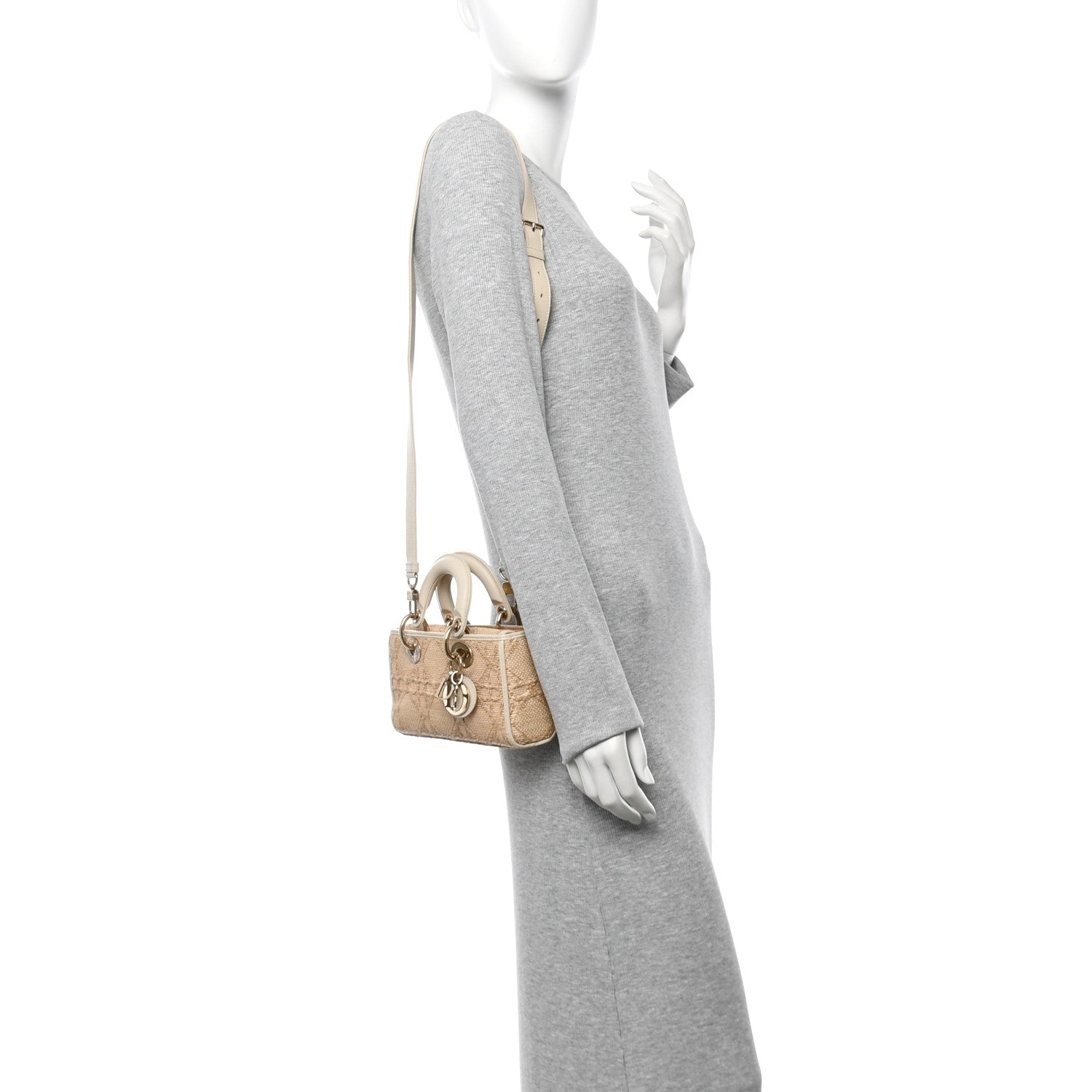 Raffia Macro Cannage Small Lady D-Joy Latte